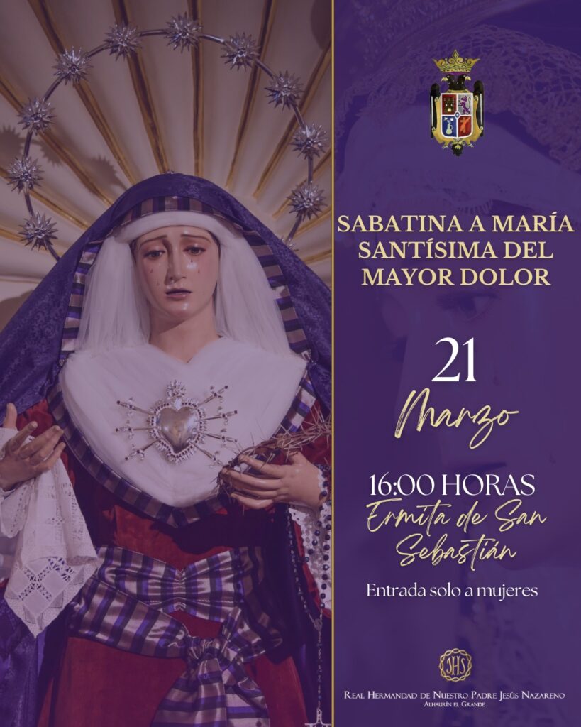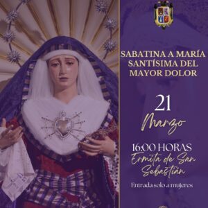 El próximo sábado 21 de marzo, a las 16:00 horas, la Ermita de San Sebastián acogerá la Sabatina de María Santísima del Mayor Dolor, un encuentro íntimo junto a la Santísima Virgen en el que se...