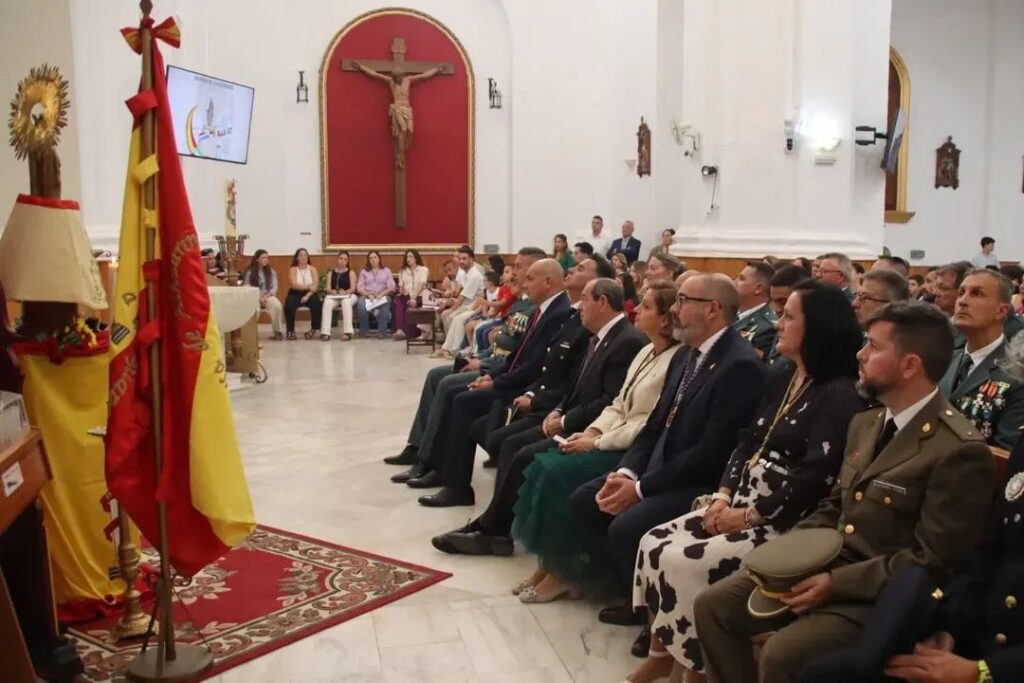 Como muestra de devoción y respeto, nuestra Hermandad realizó una ofrenda floral a la Virgen del Pilar, compuesta con los colores de la bandera de España, que se encontraba expuesta en el templo parroquial.