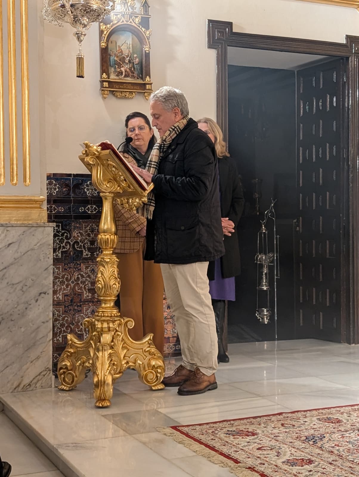 Este año, y atendiendo a las particulares circunstancias que ha atravesado nuestro municipio durante el periodo navideño, la Junta de Gobierno consideró oportuno dotar al acto de un carácter más sobrio y centrado estrictamente en la oración. Por este motivo, se prescindió de la participación del quinteto de clarinetes de nuestra Banda de Música de Nuestro Padre Jesús Nazareno, que tradicionalmente ponía notas musicales a la cita. En su lugar, el protagonismo recayó plenamente en la palabra y en la participación activa de los hermanos de la Hermandad, quienes dieron voz a las lecturas y peticiones de la celebración.