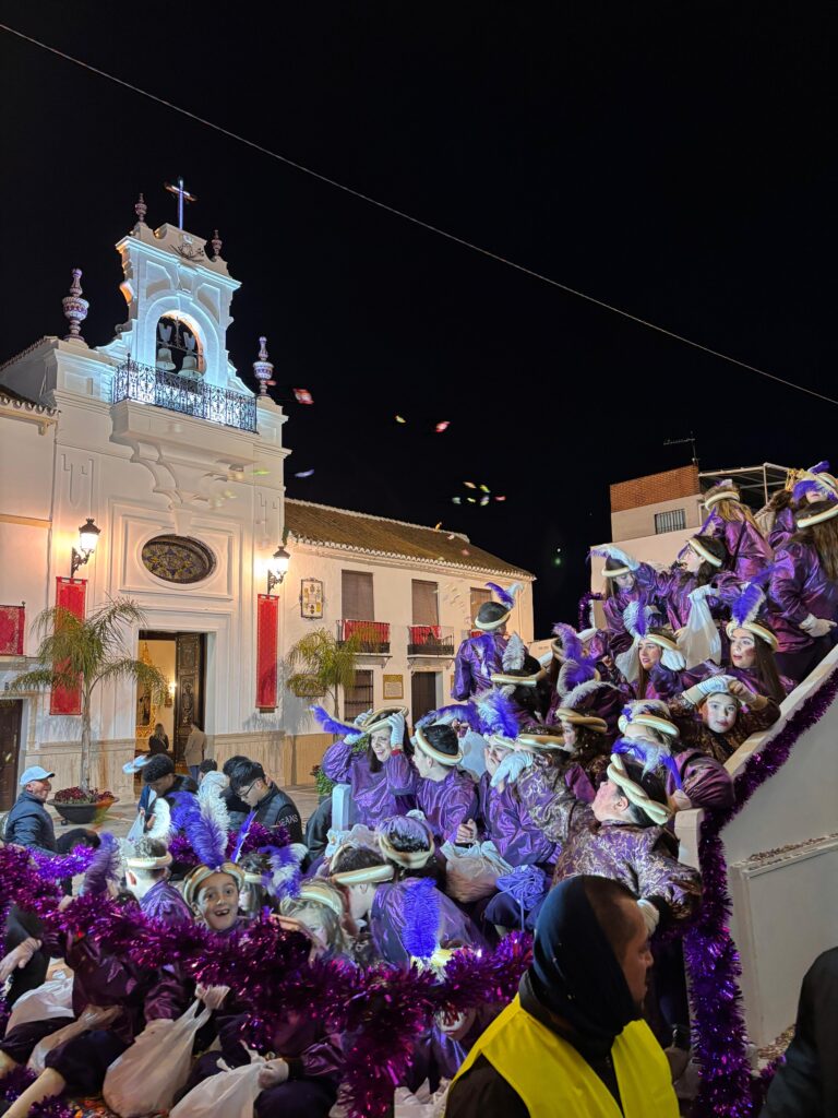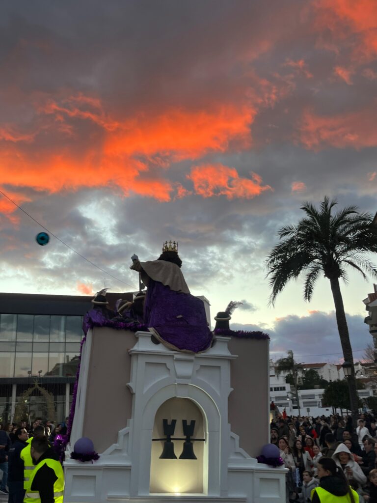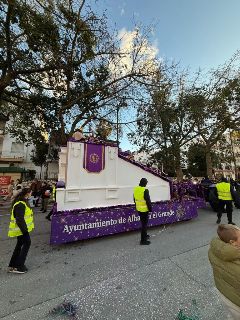 Mientras la cabalgata avanzaba por la Avenida Gerald Brenan, nuestro querido Rey Gaspar acompañado de una veintena de pajes empezaba a repartir ilusión y alegría, además de caramelos y algunos juguetes a todos los presentes.
