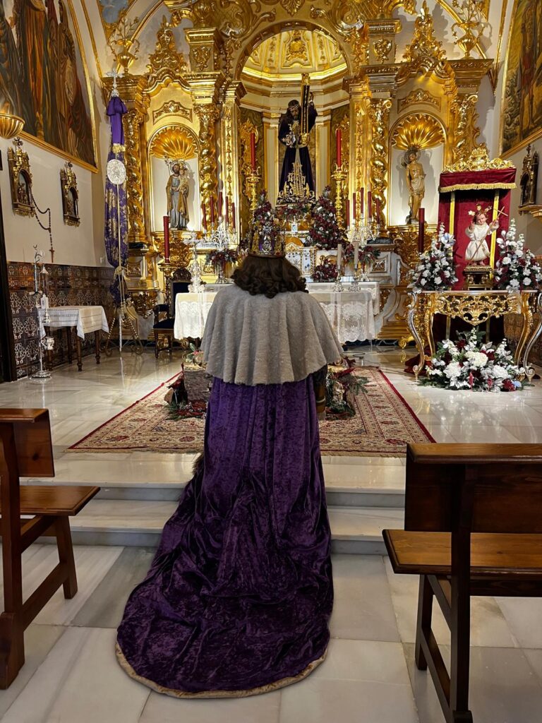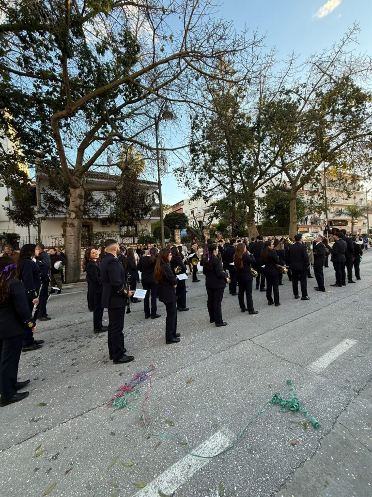 El cortejo de nuestro Rey Gaspar, caracterizado por sus ropas en tonos morados, fue acompañado durante todo el recorrido por la Banda de Música de Nuestro Padre Jesús Nazareno a cargo de su director, Don Francisco Aguilar Lima, que con sus melodías amenizaron la Cabalgata con una gran variedad de villancicos navideños.