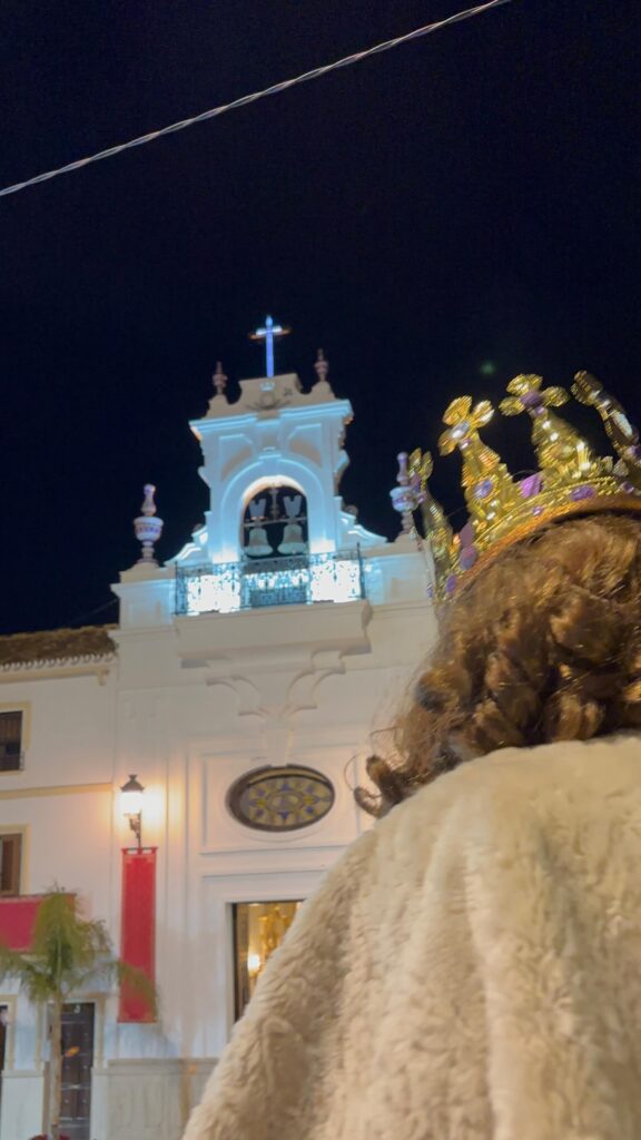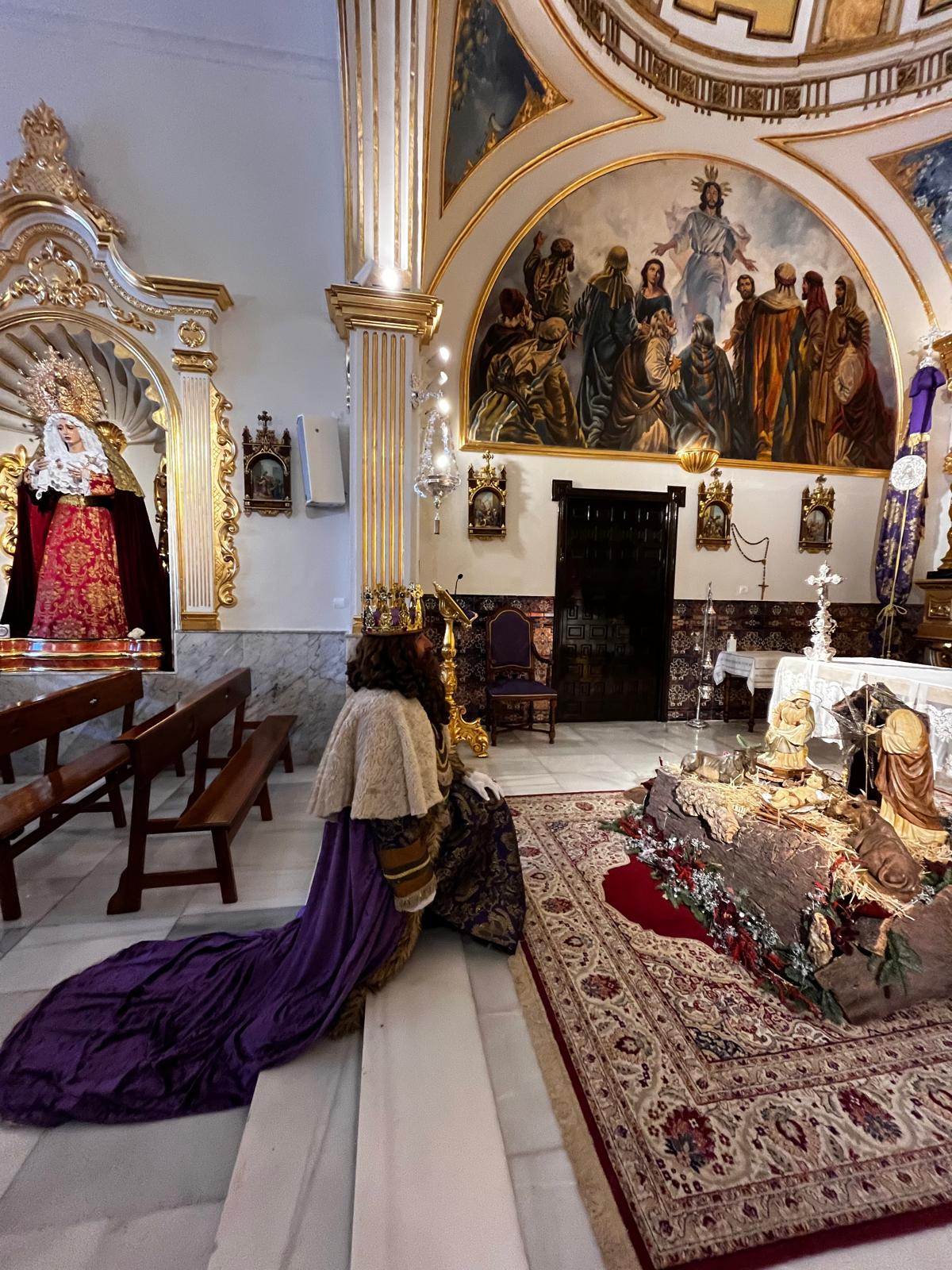 A su llegada a la Ermita de San Sebastián, la alegría desbordaba al Cortejo del Rey Gaspar, y bajo una lluvia de caramelos fueron recibidos por diferentes miembros de nuestra Real Hermandad, además de multitud de personas que disfrutaban de la Cabalgata mientras repicaban las campanas y las puertas de la Ermita permanecían abiertas.