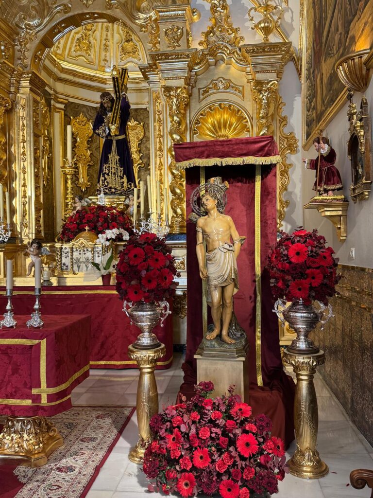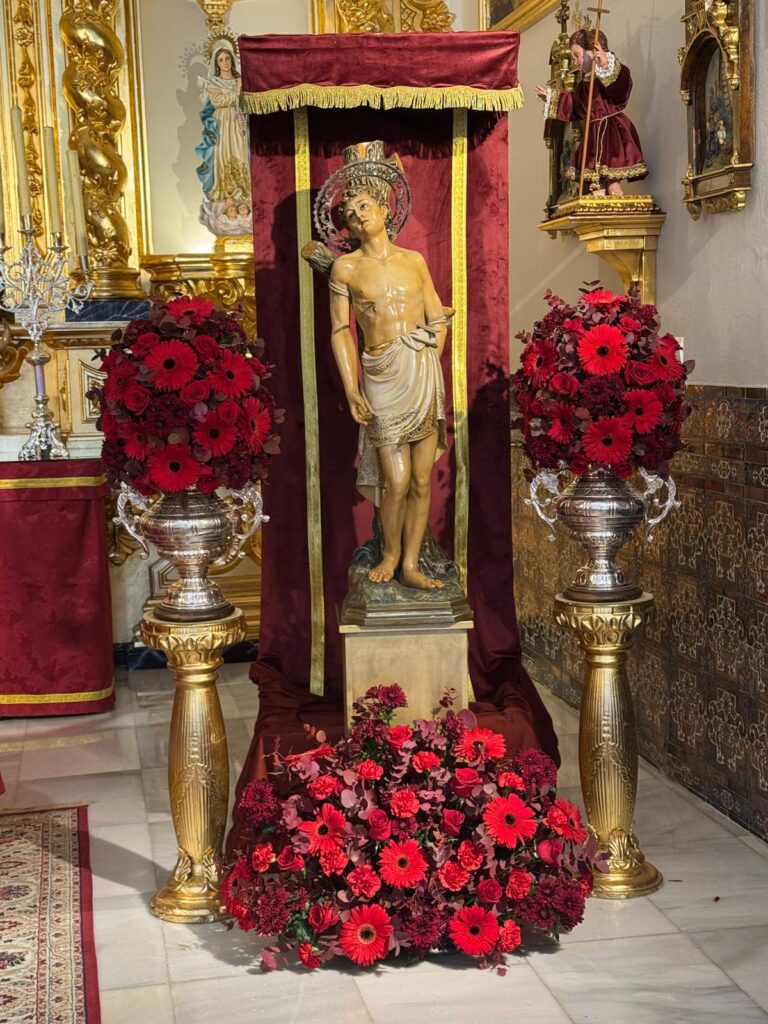 Así luce la Sagrada Imagen de San Sebastián Mártir en el interior de su ermita el día de su festividad.