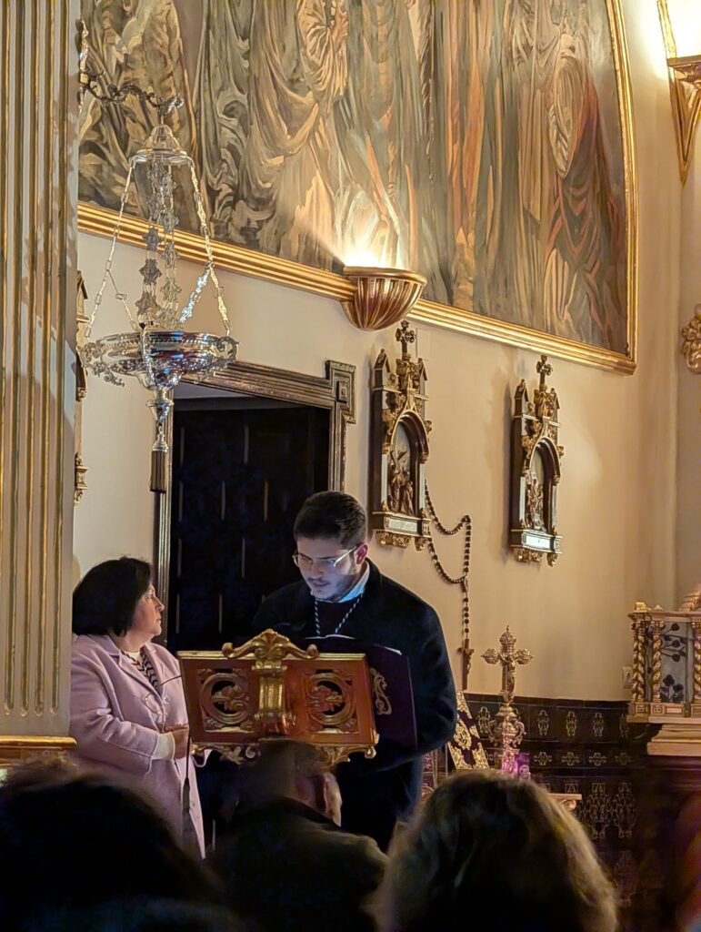 El acto concluyó con la bendición impartida por el Director Espiritual, D. Andrés Merino Mateo, con la reliquia del Lignum Crucis, que posteriormente fue puesta a besar a todos los asistentes.