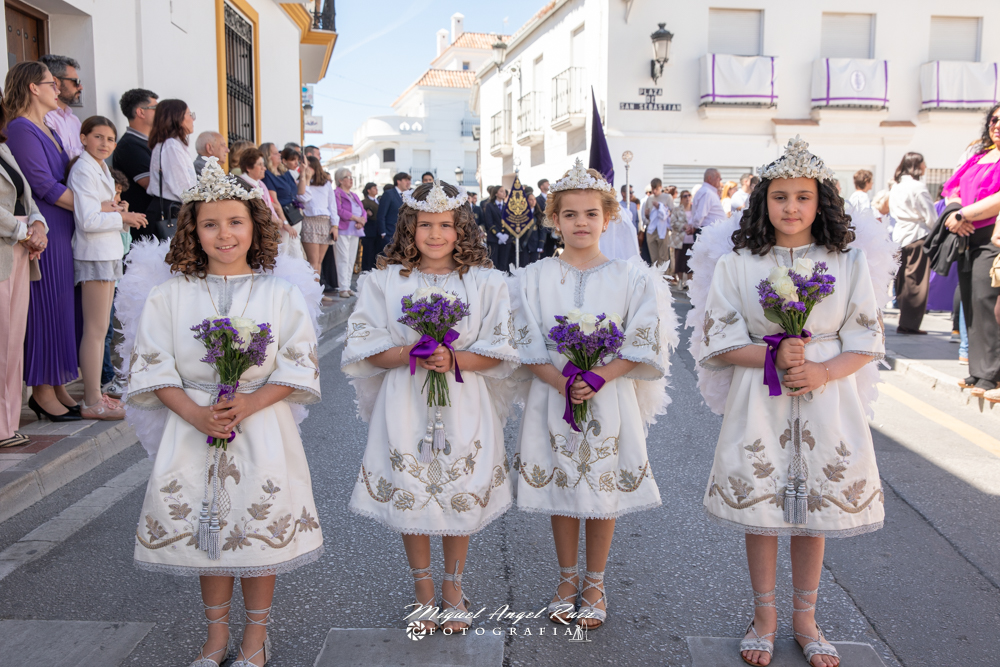 El trono, acompañado de cuatro niñas que representaban el papel de angelito, llenó las calles de nuestro pueblo de alegría y esperanza por la resurrección y la vida.