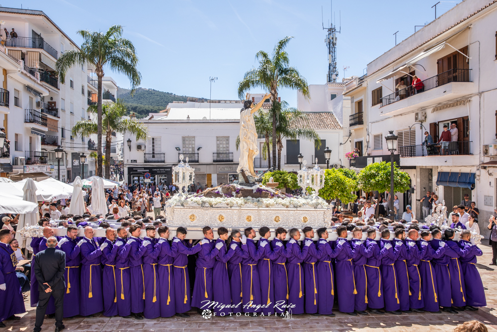 Al toque de campana de nuestro Director Espiritual, Don Andrés Merino Mateo, el trono de Nuestro Padre Jesús Resucitado comenzó su recorrido por las calles de nuestro pueblo.