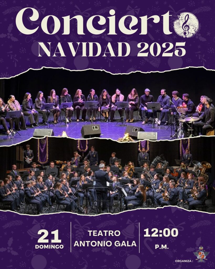 El próximo domingo 21 de diciembre, a las 12:00 del mediodía, tendrá lugar en el Teatro Municipal “Antonio Gala” el tradicional Concierto de Navidad, a cargo de la Banda de Música y el Coro de...