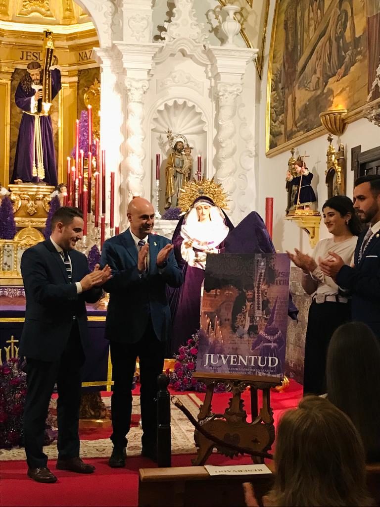 Con estas palabras de fe, de esperanza nazarena, emocionantes y sentidas, terminaba la presentación del V Cartel de la Juventud de Semana Santa, el hermano D. Raúl Solano Moreno en una concurrida Ermita de San Sebastián. El presentador del Cartel Joven plasmó las...