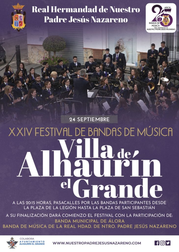 El sábado 24 de septiembre nuestra Real Hermandad, con la colaboración del Excmo. Ayuntamiento de Alhaurín el Grande, celebró el XXIV Festival de Bandas de Música “Villa de Alhaurín el Grande”. En el evento, además de la Banda de Música de la Hermandad, bajo la...