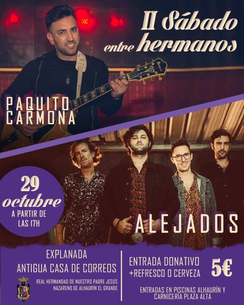 El próximo sábado 29 de octubre, la Real Hermandad de Nuestro Padre Jesús Nazareno celebrará una jornada de convivencia entre sus hermanos y simpatizantes en la EXPLANADA DE LA ANTIGUA CASA DE CORREOS, en la que contaremos con la actuación de PAQUITO CARMONA y del...