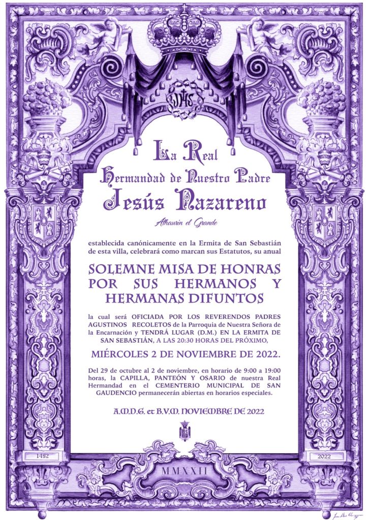 El próximo miércoles 2 de noviembre a las 20.30 horas, se celebra en la Ermita de San Sebastián, la Solemne Misa de Honras en recuerdo de los hermanos y hermanas fallecidos de nuestra Real Hermandad. La Misa de Honras es uno de los cultos más antiguos de la...