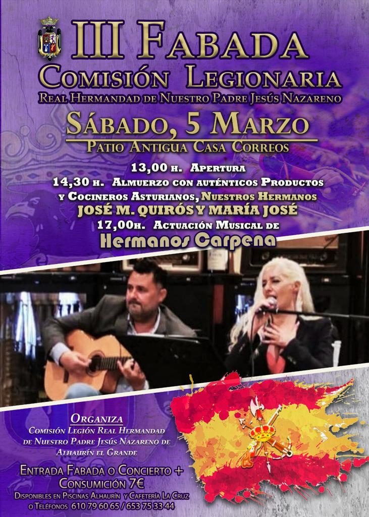 El sábado 5 de marzo, la Comisión de la Legión de Nuestra Real Hermandad organiza en el Patio de la Antigua Casa de Correos la III Fabada en la que los asistentes podrán degustar la tradicional Fabada asturiana con auténticos productos asturianos de primera...