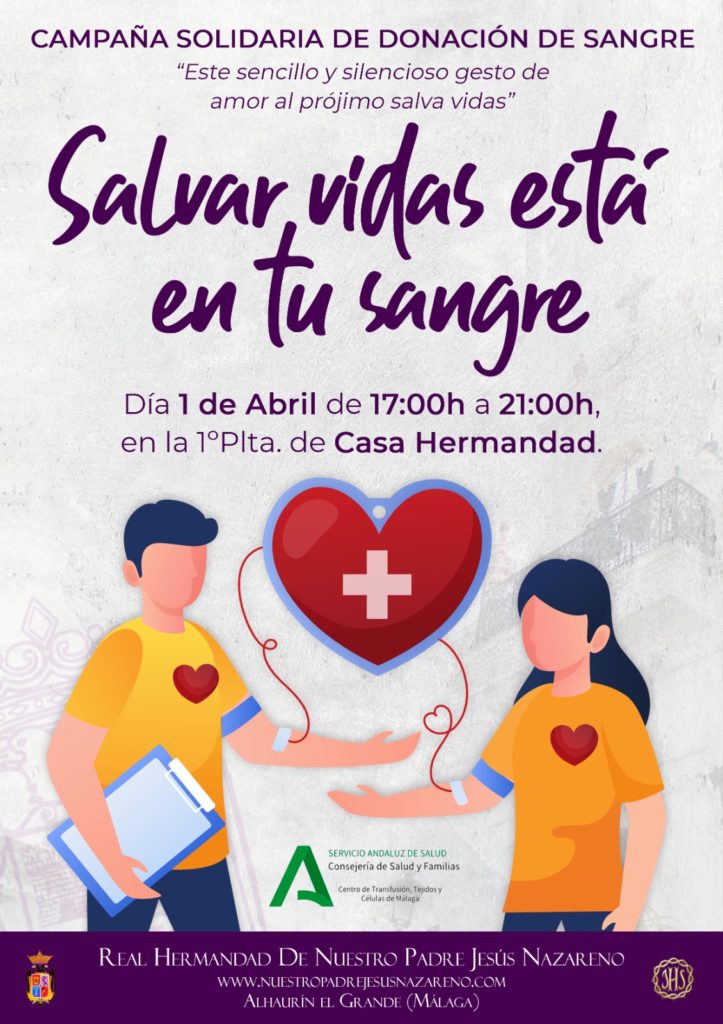 “Este sencillo y silencioso gesto de amor al prójimo salva vidas”, palabras del Papa Francisco. El próximo viernes 1 de abril de 17.00 a 21.00 horas en la primera planta de la Casa Hermandad, los hermanos y vecinos que lo deseen podrán participar en la Campaña...