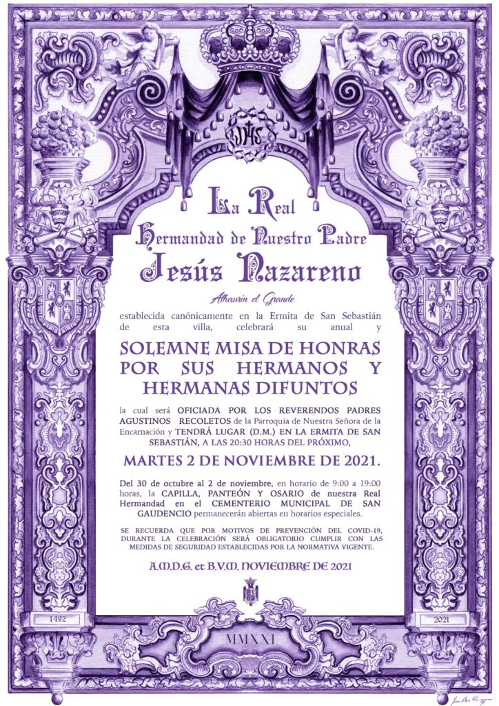 El próximo martes 2 de noviembre a las 20.30 horas, se celebra en la Ermita de San Sebastián, la Solemne Misa de Honras en recuerdo de los hermanos y hermanas fallecidos de Nuestra Real Hermandad. La Misa de Honras es uno de los cultos más antiguos de la Hermandad,...