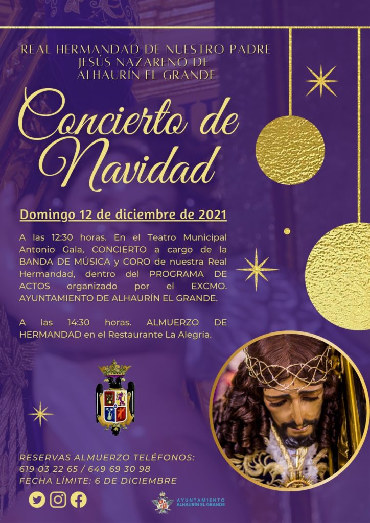 El domingo 12 de diciembre tendrá lugar, a las 12:30 horas. en el Teatro Municipal Antonio Gala, el “Concierto de Navidad” a cargo de la Banda de Música y el Coro de nuestra Real Hermandad, dentro del Programa de actos, organizado por el Excmo. Ayuntamiento de...
