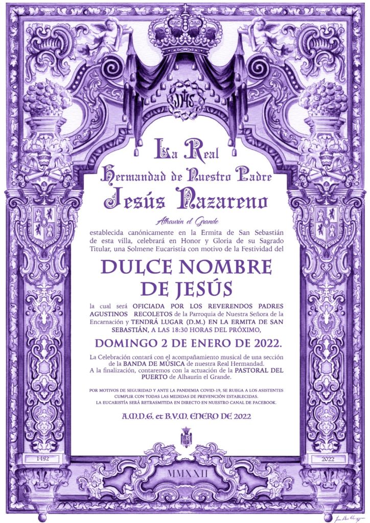 El domingo 2 de enero nuestra Real Hermandad celebró con una Solemne Eucaristía la “Festividad del Dulce Nombre de Jesús”, festividad que se viene celebrando desde 1721 cuando el Papa Inocencio VI la establece como fiesta para todo la Iglesia, contado con cuatro...