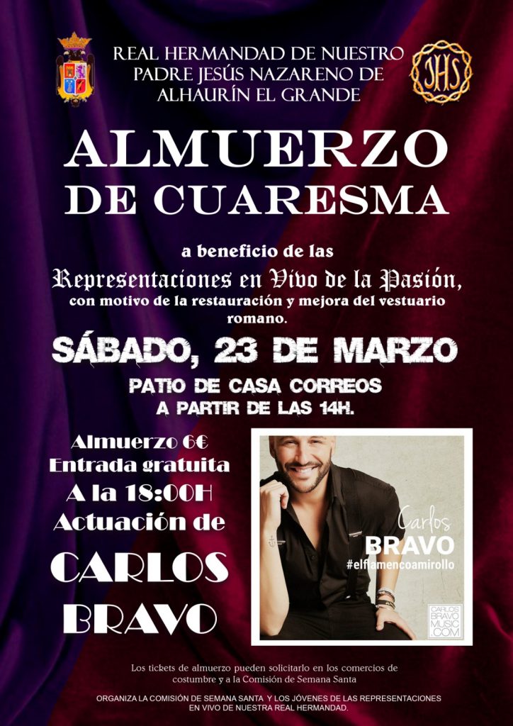 La Comisión de Semana Santa junto con los jóvenes de las representaciones “en vivo” de nuestra Real Hermandad organiza un almuerzo de Cuaresma, el sábado 23 de marzo a partir de las 14.00 horas en el patio de la Casa de Correos. La entrada es gratuita, y el...