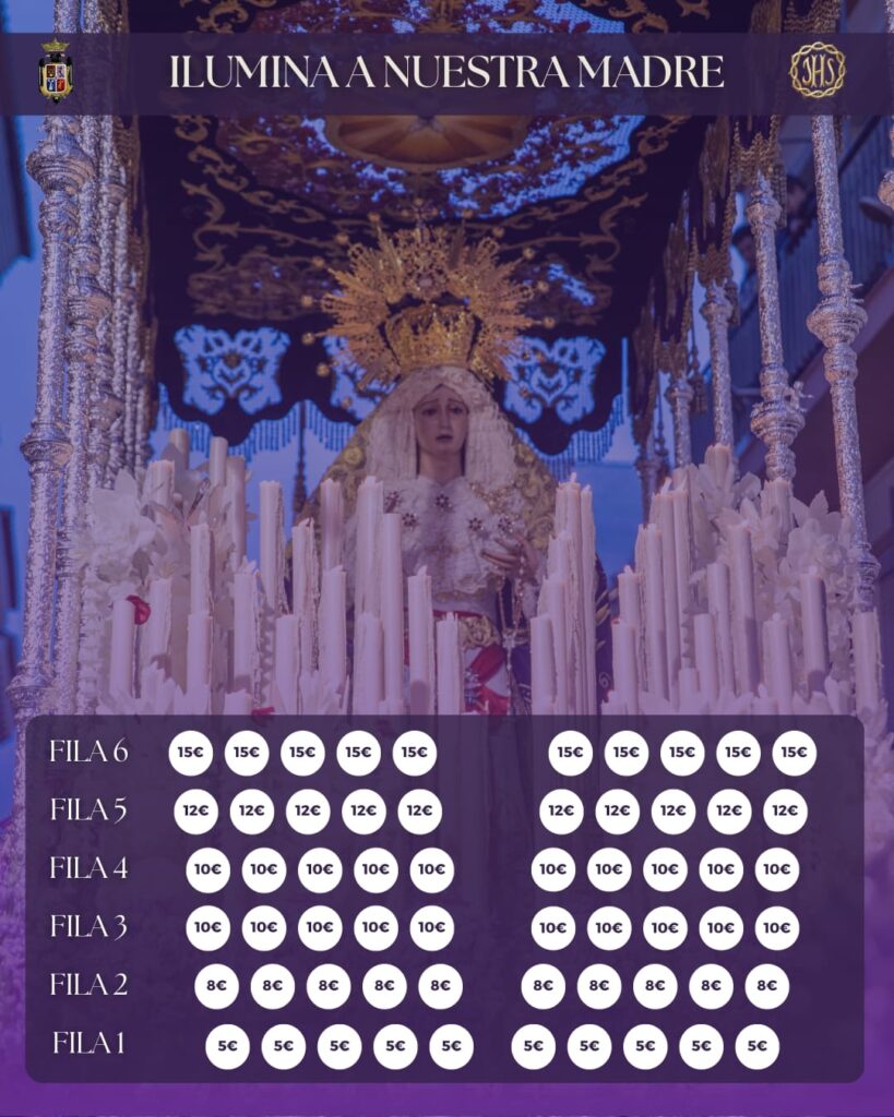 Si deseas colaborar con la donación de una de las velas de la candelería que iluminarán a María Santísima del Mayor Dolor en su recorrido procesional por las calles de Alhaurín el Grande el próximo Viernes Santo, ponte en contacto con nosotros en el siguiente...
