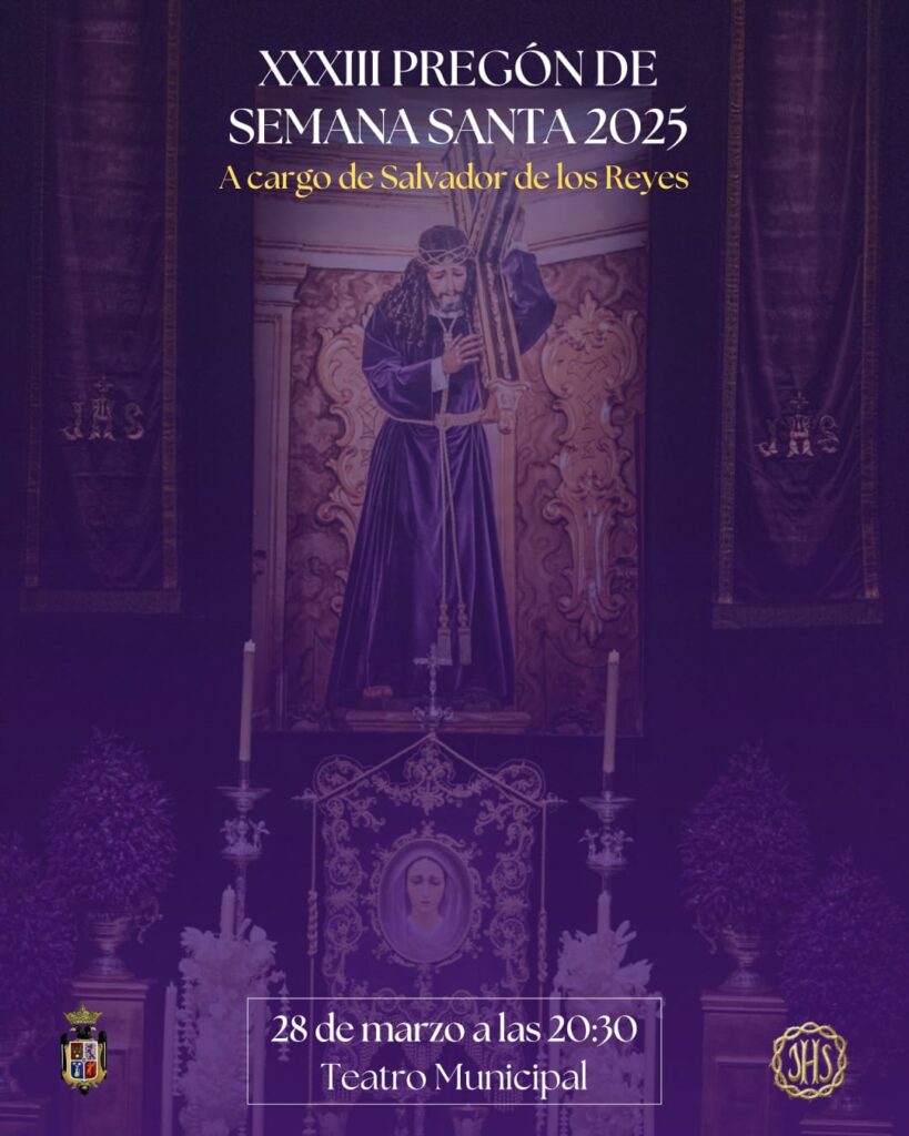 El próximo viernes 28 de marzo, a las 20:30 horas en el Teatro Municipal Antonio Gala, tendrá lugar el Pregón de la Semana Santa 2025, uno de los actos más importantes de la Cuaresma, donde se anunciará la inminente llegada de nuestra Semana de Pasión. El pregón...