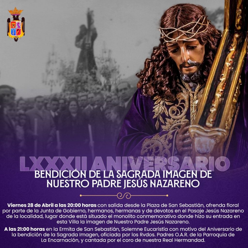 El próximo viernes 28 de abril, nuestra Real Hermandad celebra el LXXXII Aniversario de la bendición y llegada de Nuestro Padre Jesús Nazareno a Alhaurín el Grande, una de las fechas más emblemáticas para los hermanos y hermanas de Jesús. Con motivo de esta...