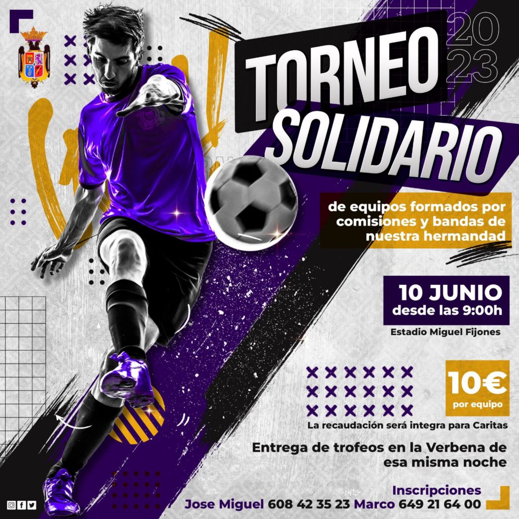 El próximo sábado 10 de junio tendrá lugar el tradicional torneo solidario de equipos formados por comisiones y bandas de nuestra hermandad. Los equipos estarán formados por un máximo de 12 jugadores que deberán de rellenar el formulario de inscripción que se...